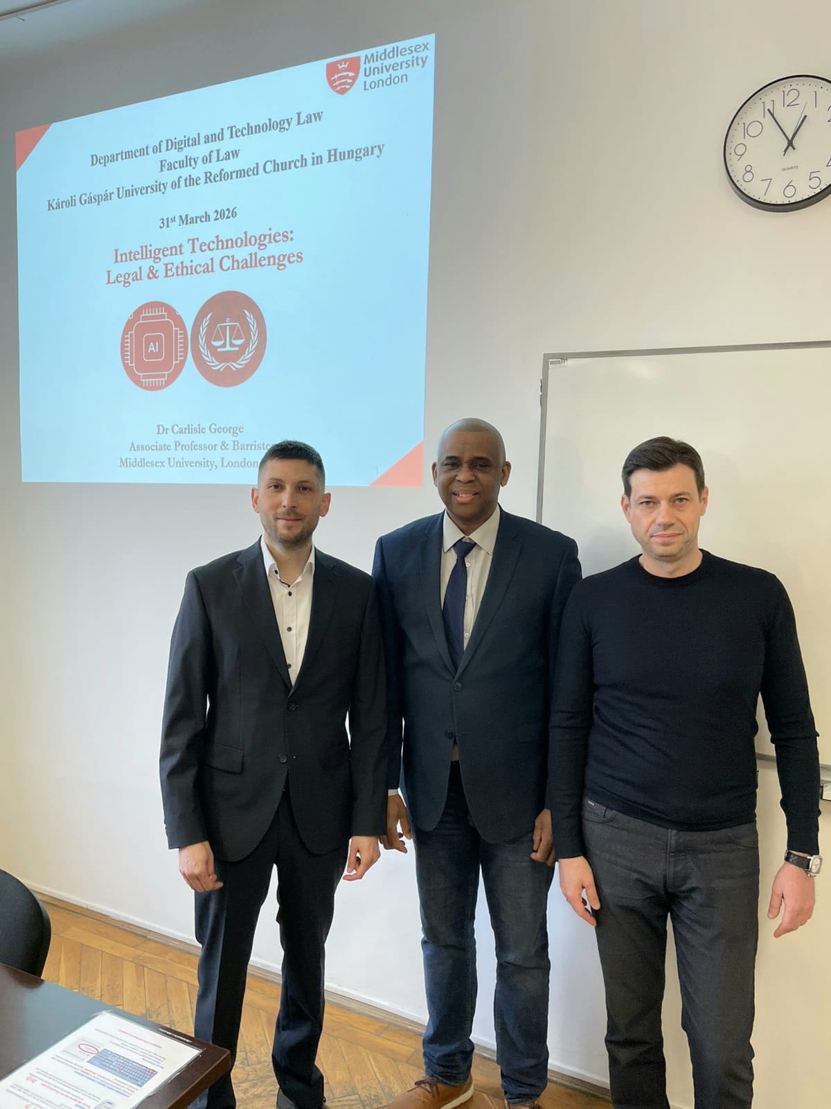 On Tuesday 31st March 2026, Dr Carlisle George delivered an invited lecture on “Legal and Ethical Aspects of Intelligent Technologies” to law students in the Department of Digital and Technology Law, Faculty of Law, at Károli Gáspár University in Budapest, Hungary.