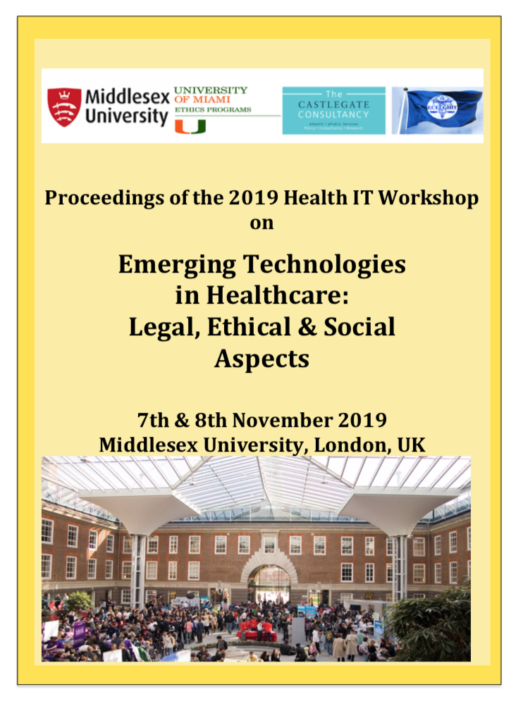 George, C., Whitehouse, D. and Duquenoy, P. (eds.) 2019. Proceedings of the 2019 Health IT Workshop on Emerging Technologies in Healthcare: Legal, Ethical & Social Aspects 7th & 8th November 2019 Middlesex University, London, UK [Download link]