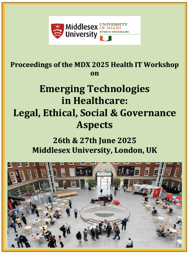 George, C., Whitehouse, D. and Duquenoy, P. (eds.) 2025. Proceedings of the MDX 2025 Health IT Workshop on Emerging Technologies in Healthcare: Legal, Ethical, Social & Governance Aspects. Middlesex University. https://doi.org/10.60528/2q6192